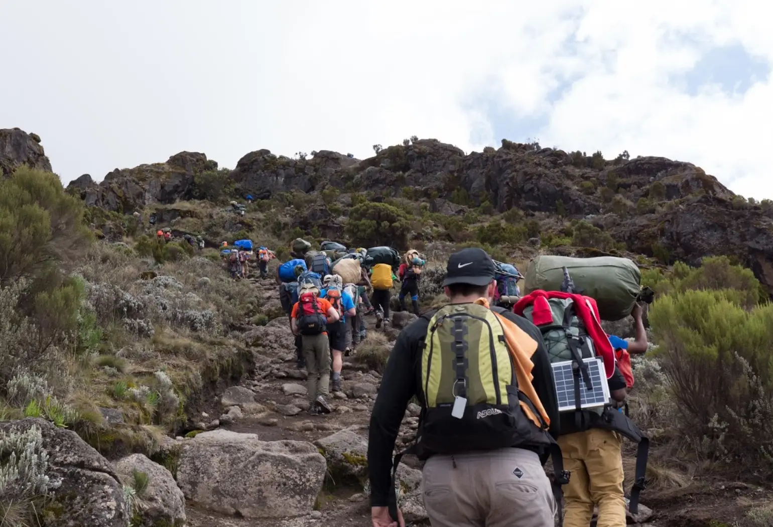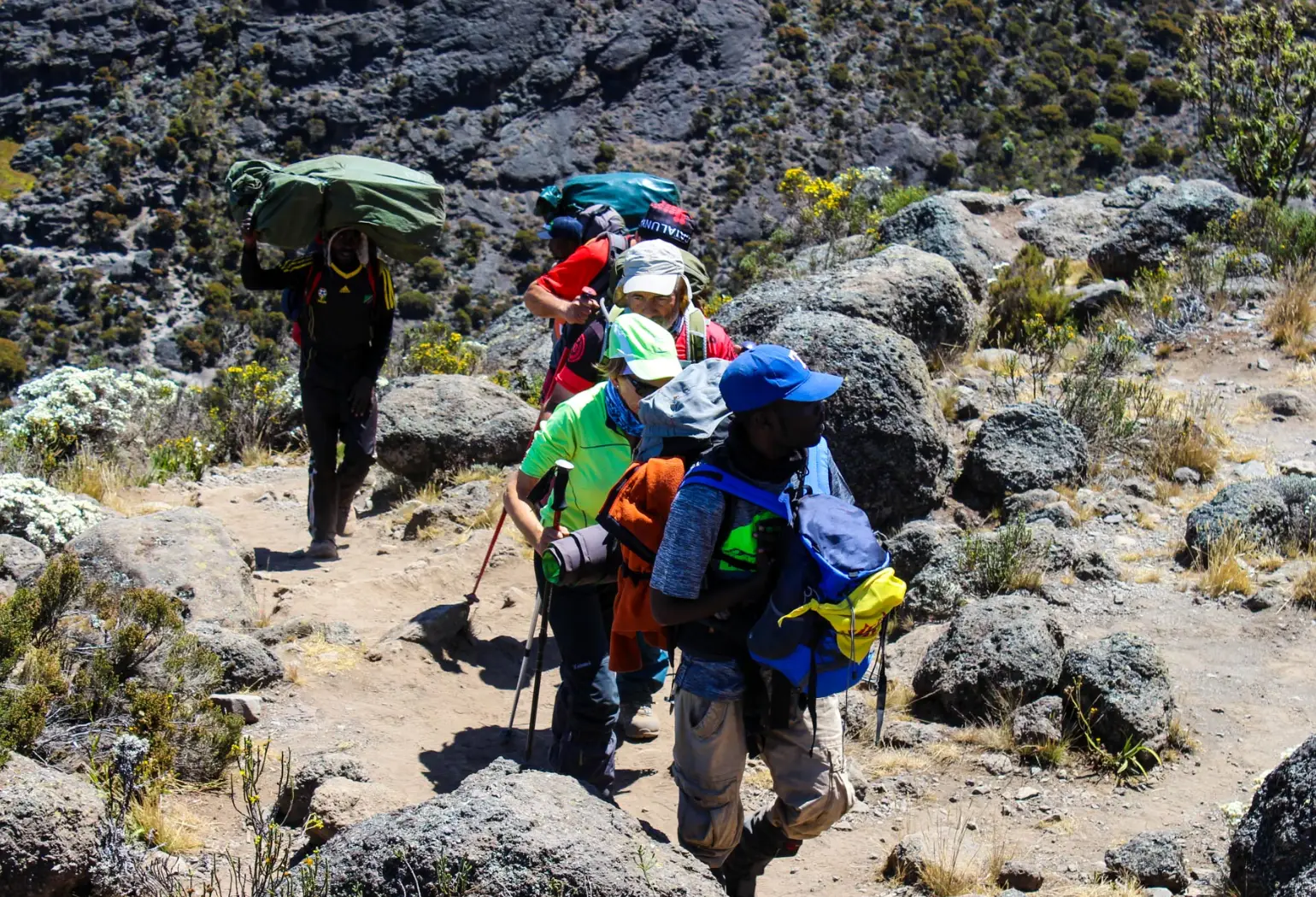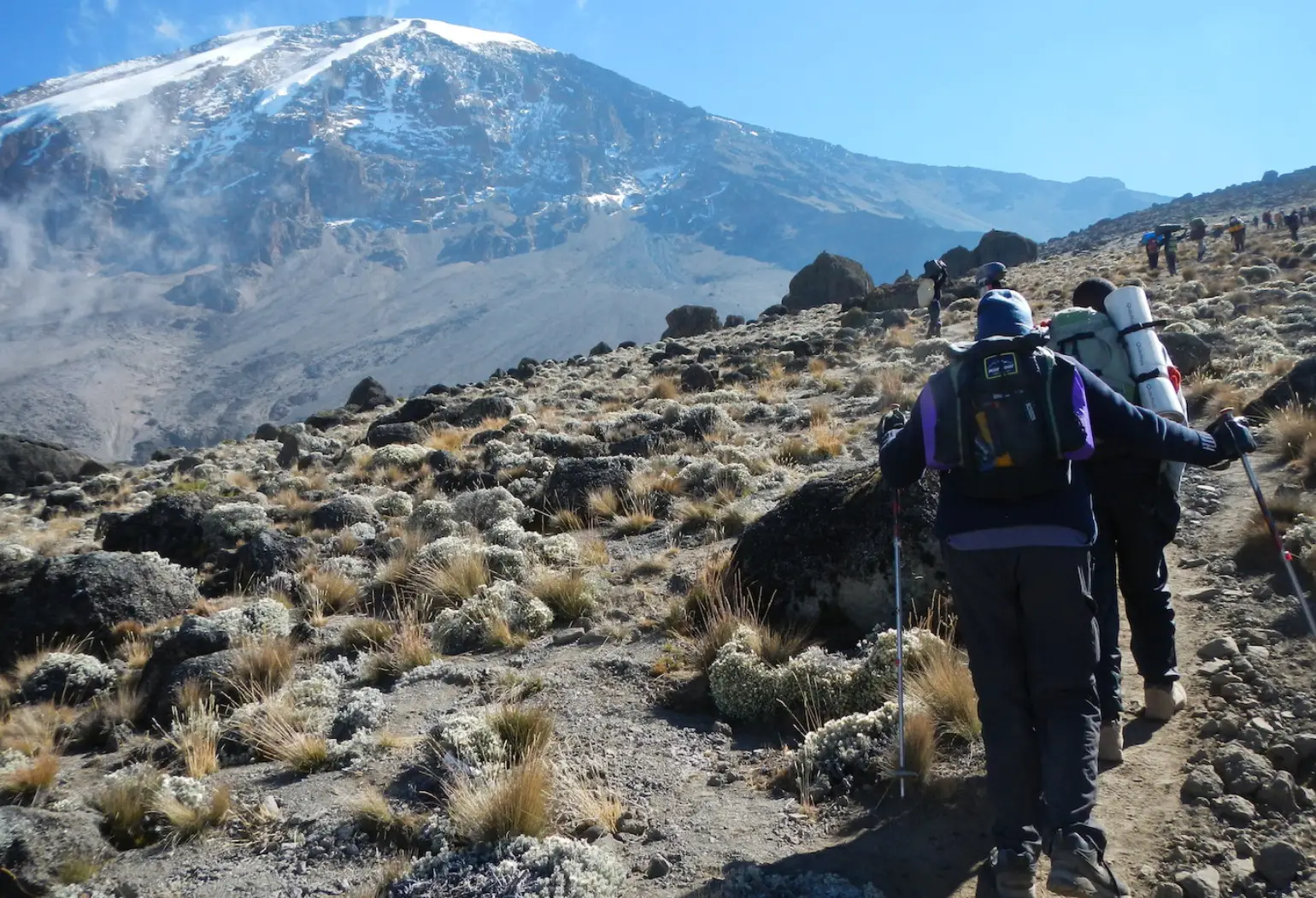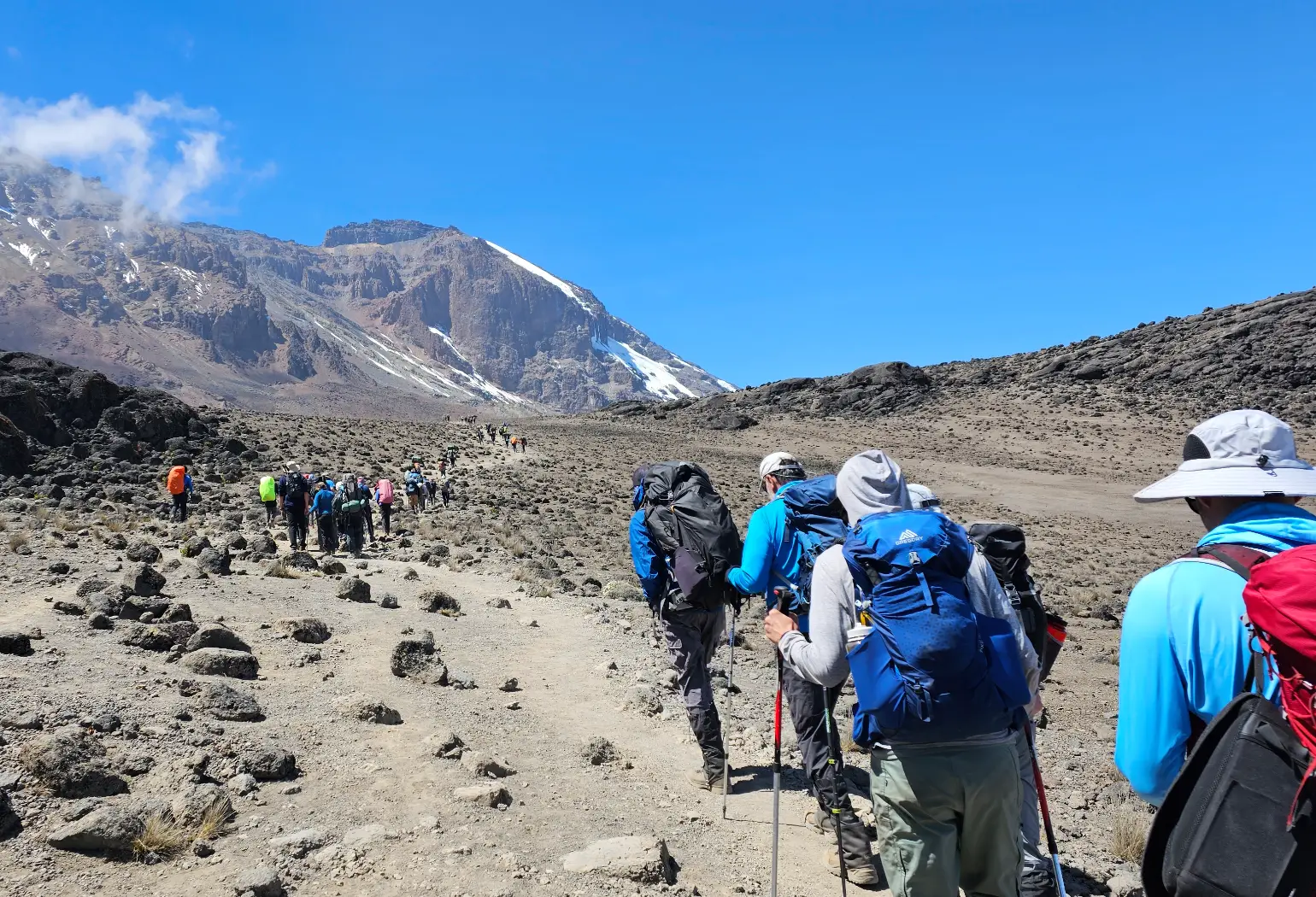 After a 4-hour drive to Londorossi Gate, we start our hike through the lush rainforest to Mti Mkubwa Camp. The trail is gentle but can be muddy and slippery, so gaiters and trekking poles are recommended. This first day offers a great introduction to Kilimanjaro’s diverse environment.