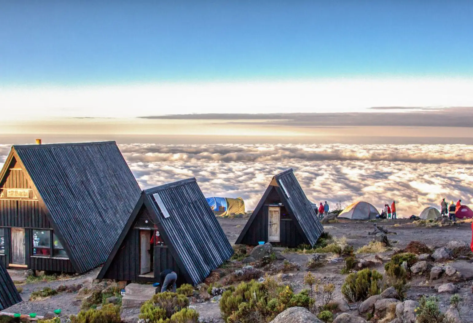 Horombo hut is a village of huts perched on a small plateau, with buildings similar to Mandara, but with a total capacity of 120 climbers! Horombo is normally bustling with hikers, guides and porters, with an atmosphere of adventure and excitement. You will meet both ascending and descending hikers here.