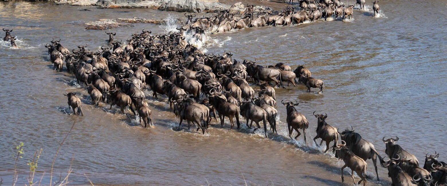 Join us on a journey to witness the Great Wildebeest Migration is a once-in-a-lifetime adventure. Following the vast herds as they cross rivers and trek across the plains evokes a deep sense of awe. It’s not just a trip; it’s a story of survival, endurance, and nature’s unyielding power.